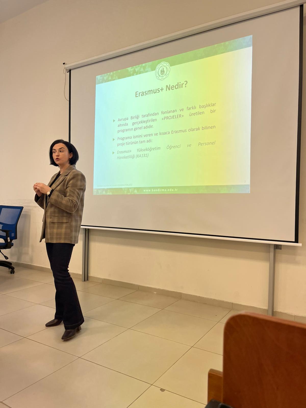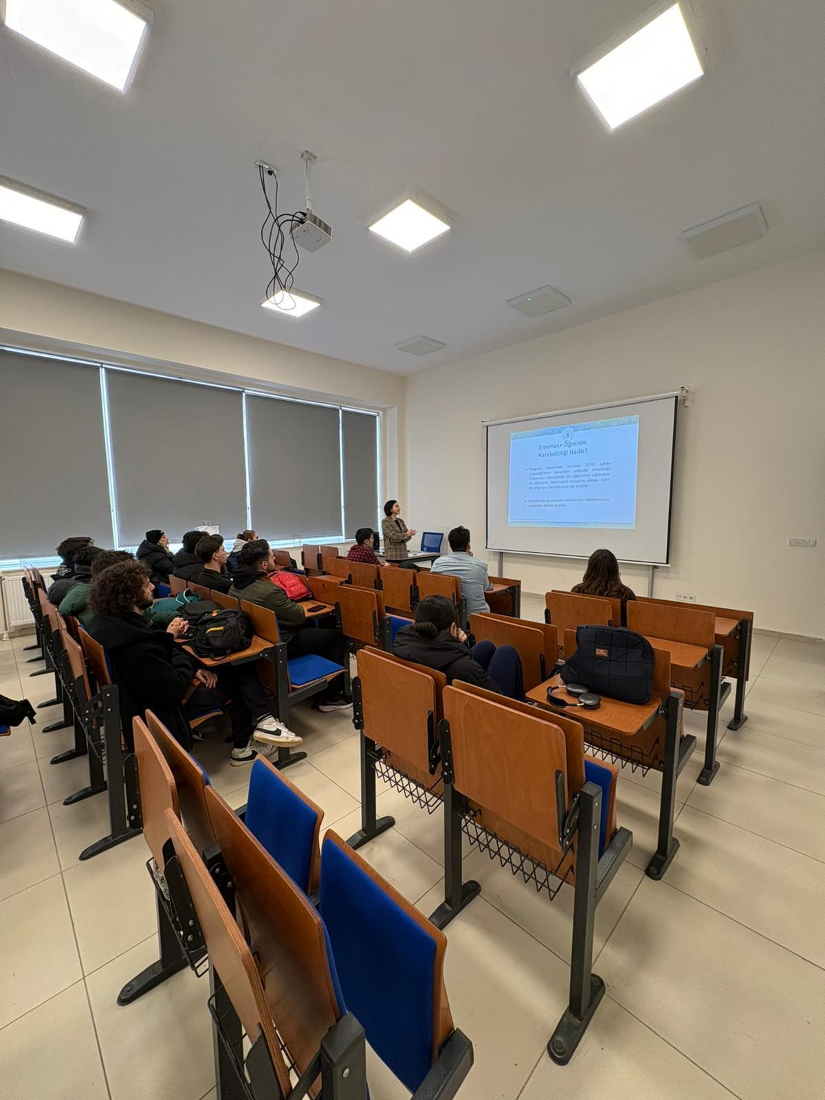 Program kapsamında öğrenim ve staj hareketliliği, başvuru koşulları, değerlendirme kriterleri, hibe süreçleri ve üniversitenin anlaşmalı olduğu kurumlar hakkında detaylı bir sunum gerçekleştirildi. Ayrıca başvuru takvimi ile gerekli belgeler öğrencilere aktarıldı.