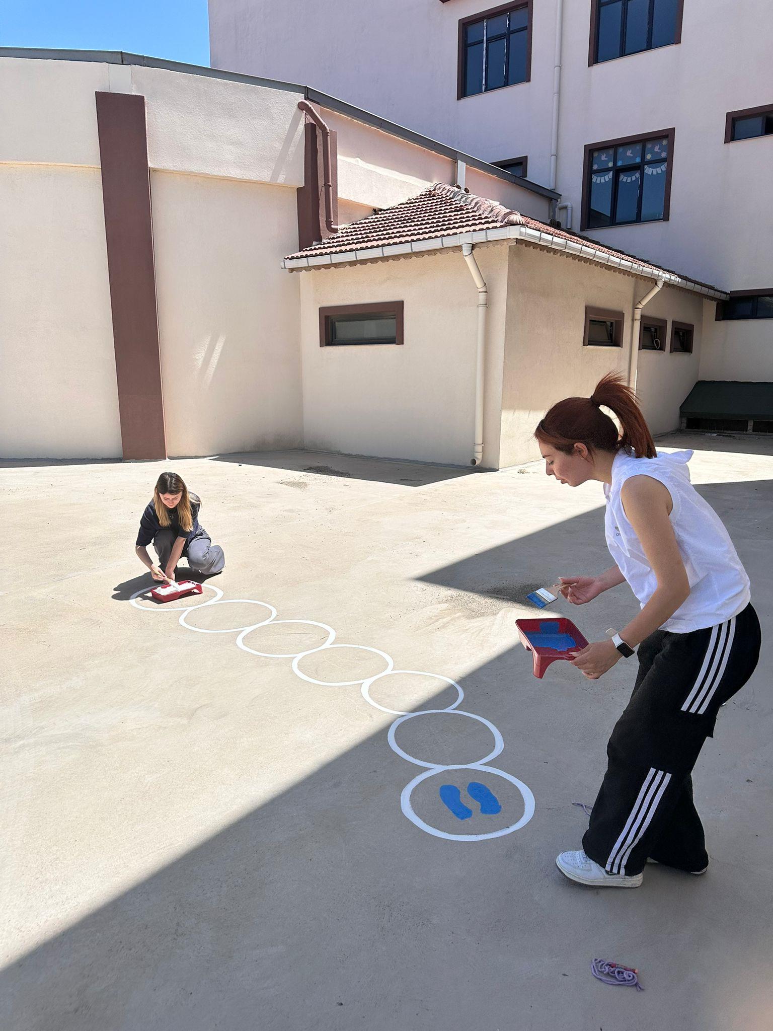 Beden Eğitimi ve Spor Öğretmenliği Bölümü 4.sınıf öğrencileri Ebru Sude Aksak, Beyza Hatun Sayan, Hilal Elmas Akyüz, pınar Sarıkaya, pınar altınok “Toplumsal Hizmet ve Sosyal Sorumluluk Uygulamaları ” dersi kapsamında 10-16 Mayıs Engelliler Haftasında Hicri Ercili Özel Eğitim Okulunda fiziksel aktivite parkurlarını okulun bahçesine çizildi . Geleceğin öğretmenleri özel gereksinimli çocuklara kalıcı oyun alanları oluşturarak daha aktif olmalarına katkı sağladılar .