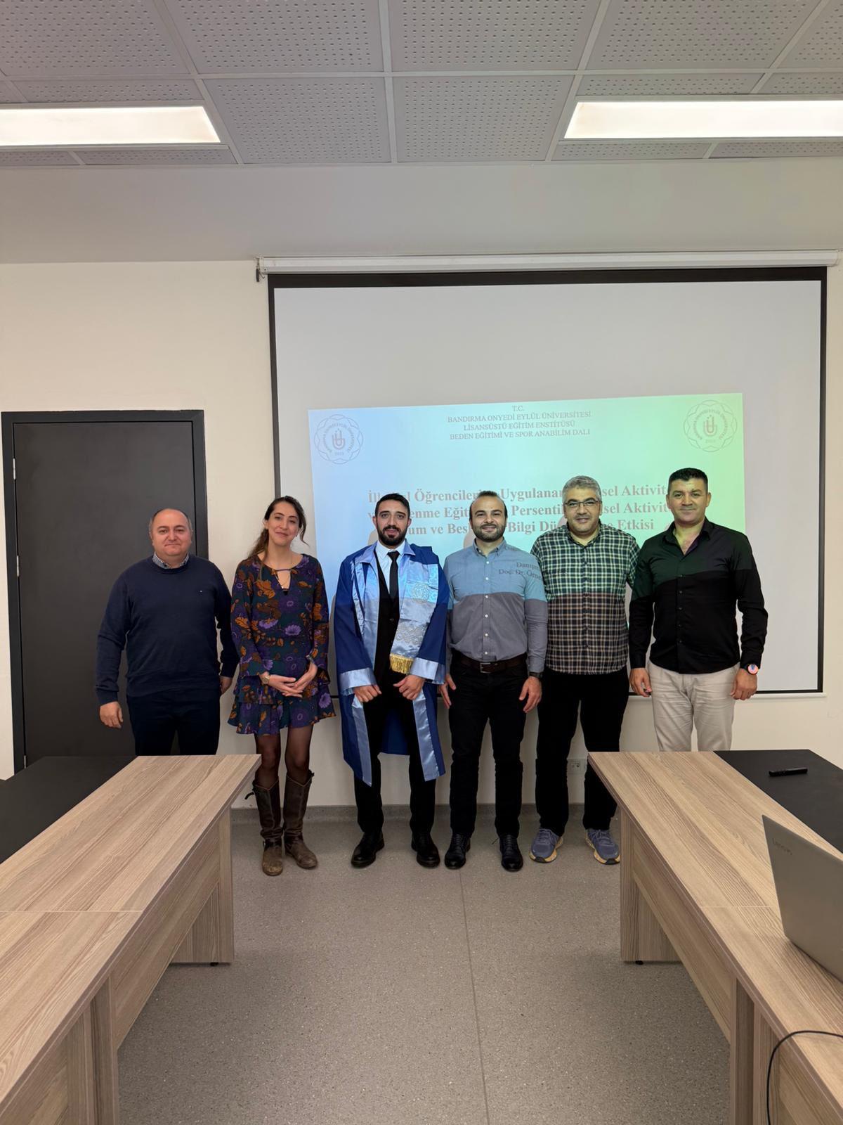 Osman UYHAN, “İlkokul Öğrencilerine Uygulanan Fiziksel Aktivite ve Beslenme Eğitiminin Persentil, Fiziksel Aktivite Tutum ve Beslenme Bilgi Düzeylerine Etkisi” başlıklı doktora tezini Doç. Dr. Ömer ÖZER danışmanlığında, başarıyla savundu. Tez jürisi; Prof. Dr. Oğuzhan YÜKSEL, Prof. Dr. Veli Volkan GÜRSES, Doç. Dr. Büşra SÜNGÜ ve Doç. Dr. Erhan DEVRİLMEZ’den oluştu. Çalışmada, ilkokul öğrencilerine yönelik uygulanan fiziksel aktivite programı ve beslenme eğitiminin, çocukların büyüme-gelişim göstergeleri olan persentil değerleri, fiziksel aktiviteye yönelik tutumları ve beslenme bilgi düzeyleri konuları ele alındı.