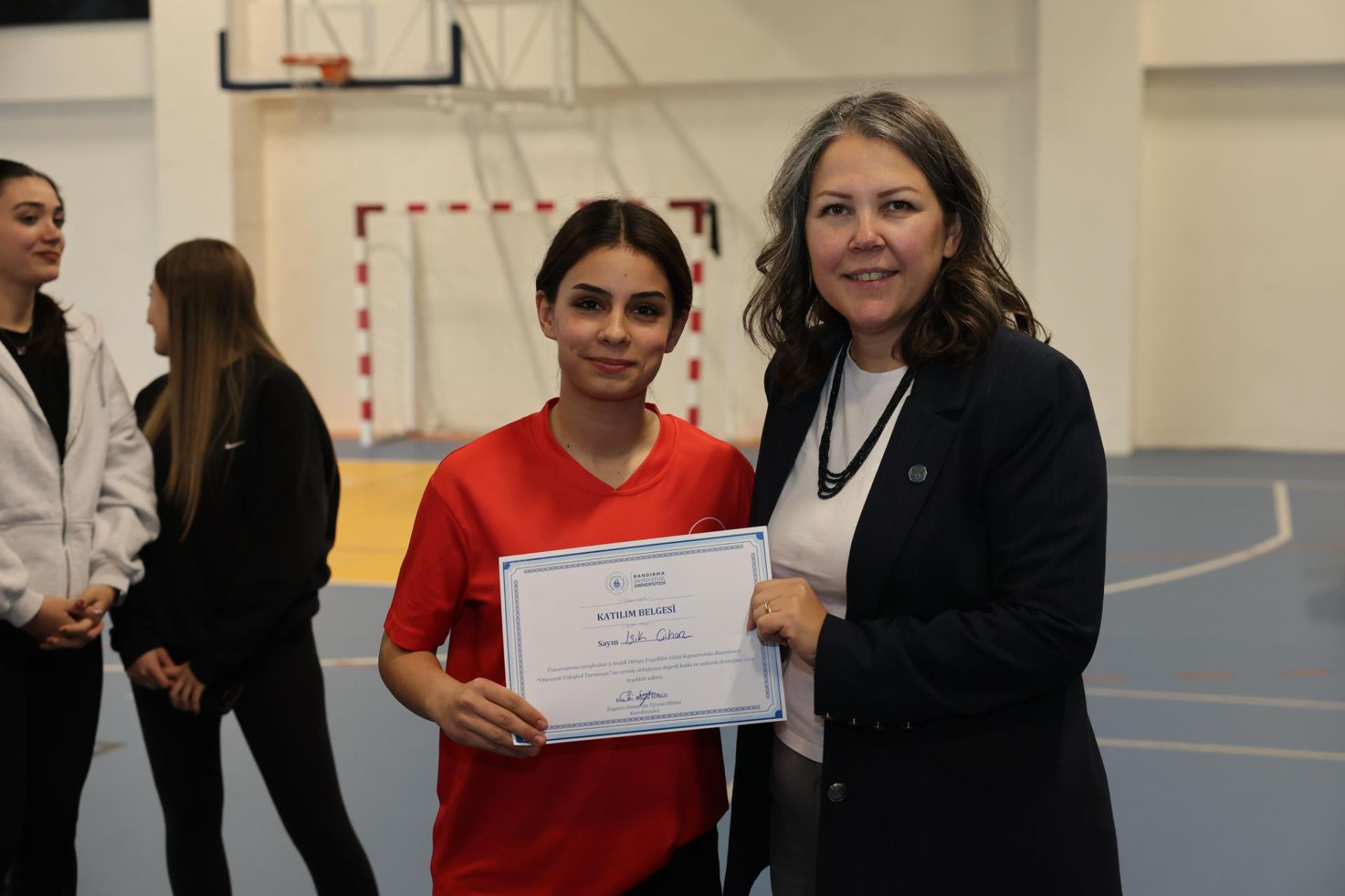 Turnuva sonunda dereceye giren takımlara belgeleri; Rektör Yardımcımız Prof.Dr. Ebru Kaya Mutlu , Spor Bilimleri Fakültesi Dekan Yardımcımız Prof. Dr. Serkan Hacıcaferoğlu , Engelsiz Üniversite Koordinatörümüz ve Spor Bilimleri Fakültesi öğretim üyemiz Doç. Dr. Büşra Süngü tarafından takdim edildi.