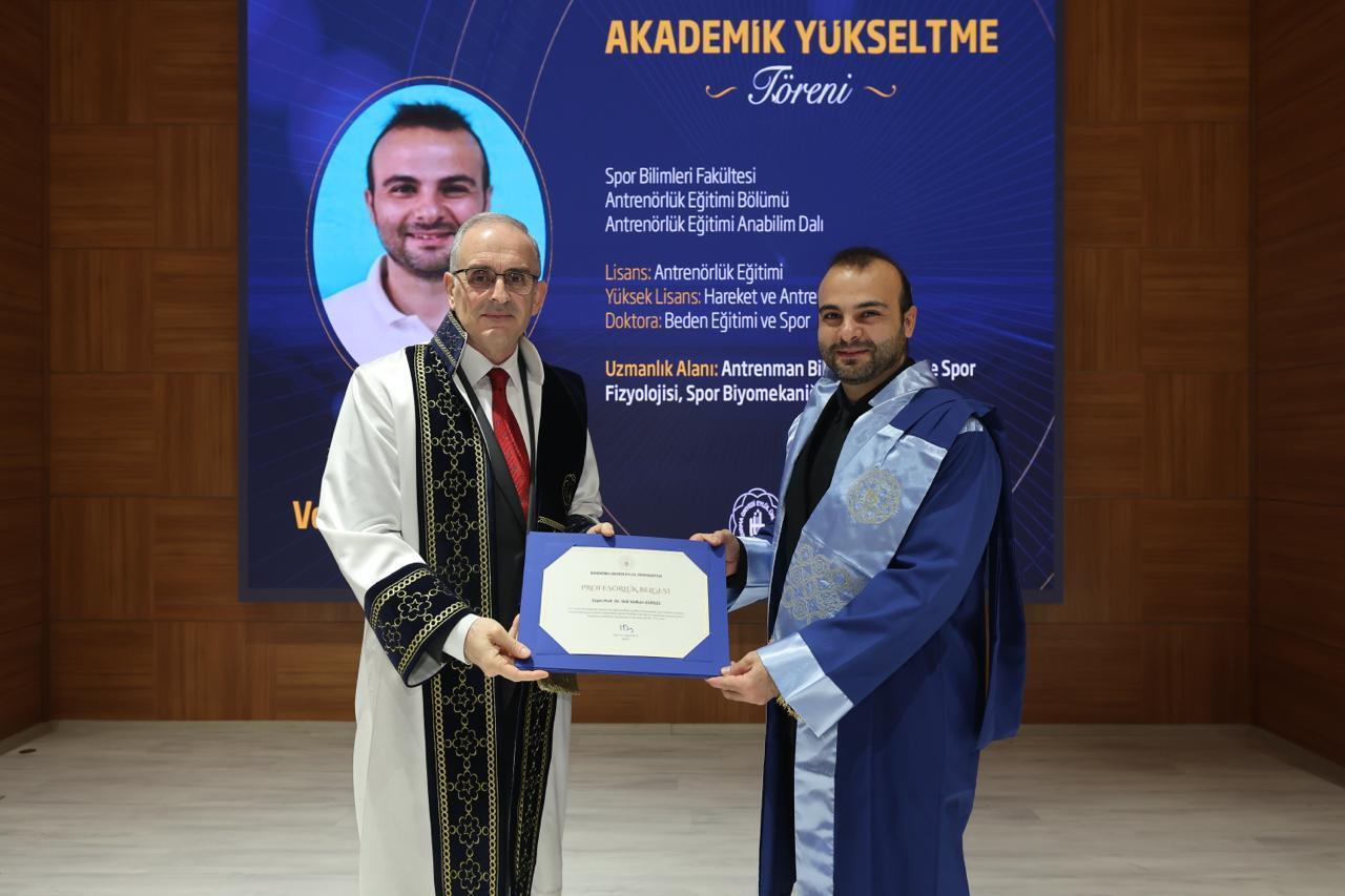 Akademik yükseltme süreci kapsamında ise; 2024 ve 2025 yıllarında Profesör, Doçent ve Dr. Öğretim Üyesi unvanlarını almaya hak kazanan öğretim üyelerimize belgeleri takdim edildi. Fakültemizde ise, Prof. Dr. Aydın KARAÇAM ve Prof. Dr. Veli Volkan GÜRSES ve Dr. Öğr. Üyesi Kamil UZGUR yükseltme almaya kazan kazandı.